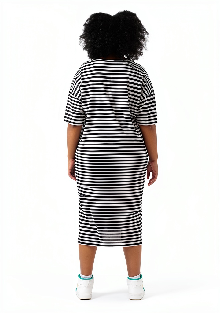 Il est recommandé de laver la robe à l’eau froide et de l’essorer délicatement. Évitez le séchage en machine à haute température pour maintenir la couleur et la forme des rayures.