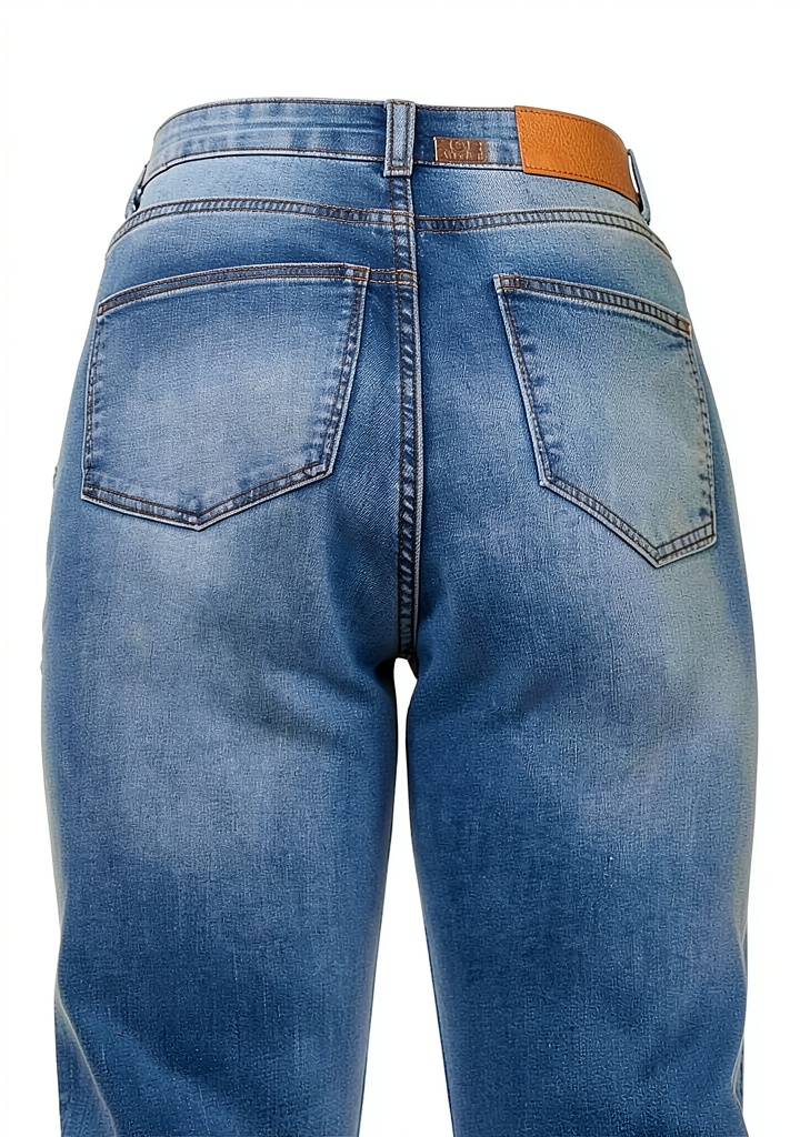 Le jean est fabriqué en mélange de coton extensible, offrant souplesse et résistance pour un port quotidien confortable.