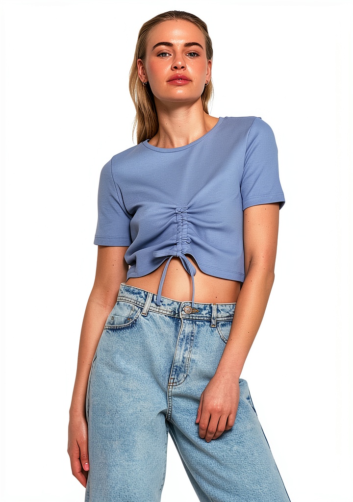 Ce t-shirt est conçu pour les occasions décontractées : sorties entre amis, courses en ville, ou moments de détente à la maison. Son tissu respirant et son ajustement flexible le rendent adapté aux saisons chaudes, tandis que le design froncé ajoute une élégance discrète. Cible principale : les femmes actives de 18 à 40 ans, appréciant les vêtements confortables sans sacrifier le style. Portez-le avec un pantalon ample ou une jupe pour un look équilibré et moderne.