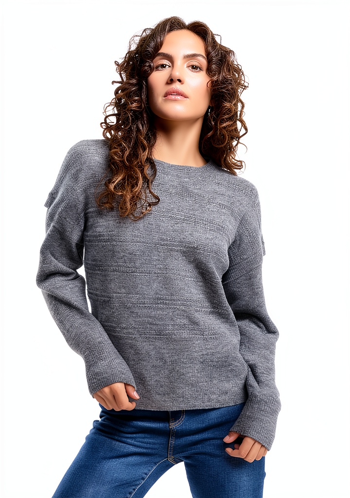 Le pull NOISY MAY Nmlizzy est un vêtement pour femme alliant style et confort. Doté de manches longues, d’un col rond et d’une coupe droite, il est confectionné en matériau doux et respirant, idéal pour les saisons fraîches. Les épaules profondes et les volants légers sur les coutures des manches ajoutent une touche d’élégance décontractée. Fabriqué par Bestseller A/S, ce pull est disponible en taille S et couleur mélange de gris moyen, avec un numéro de modèle 27017046.