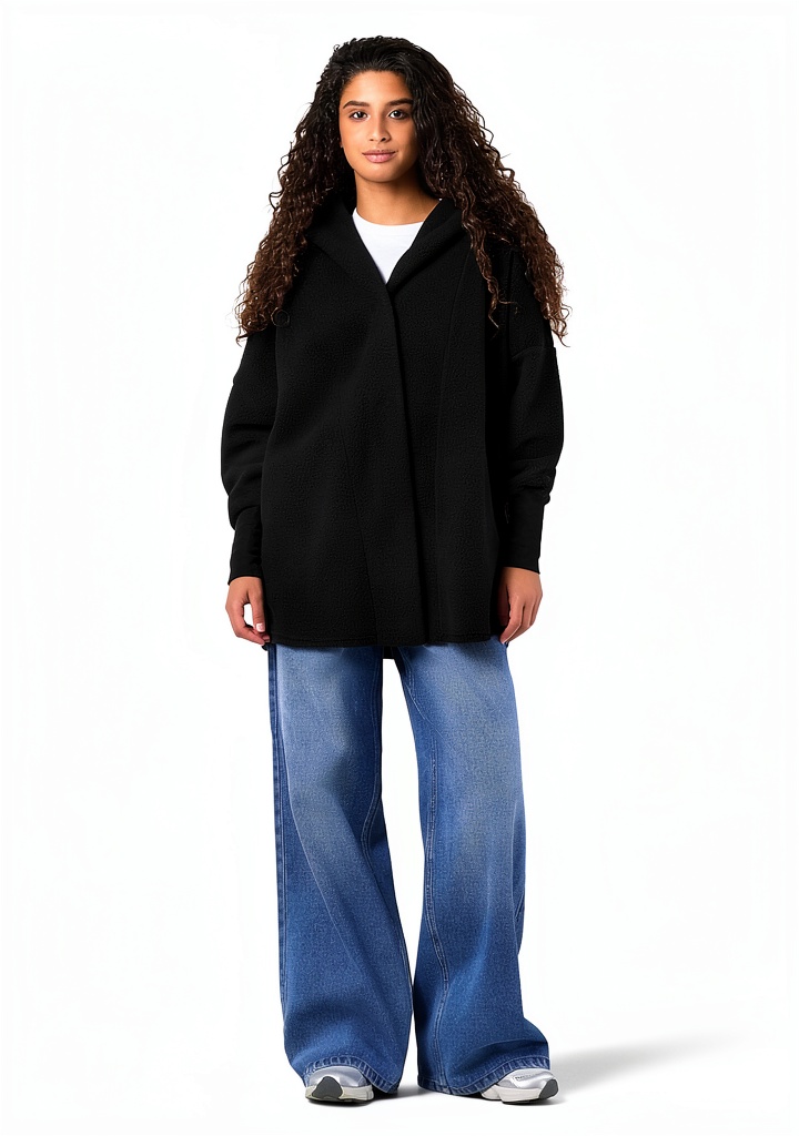 - Poignets côtelés et col fendu pour un style décontracté et ajustable